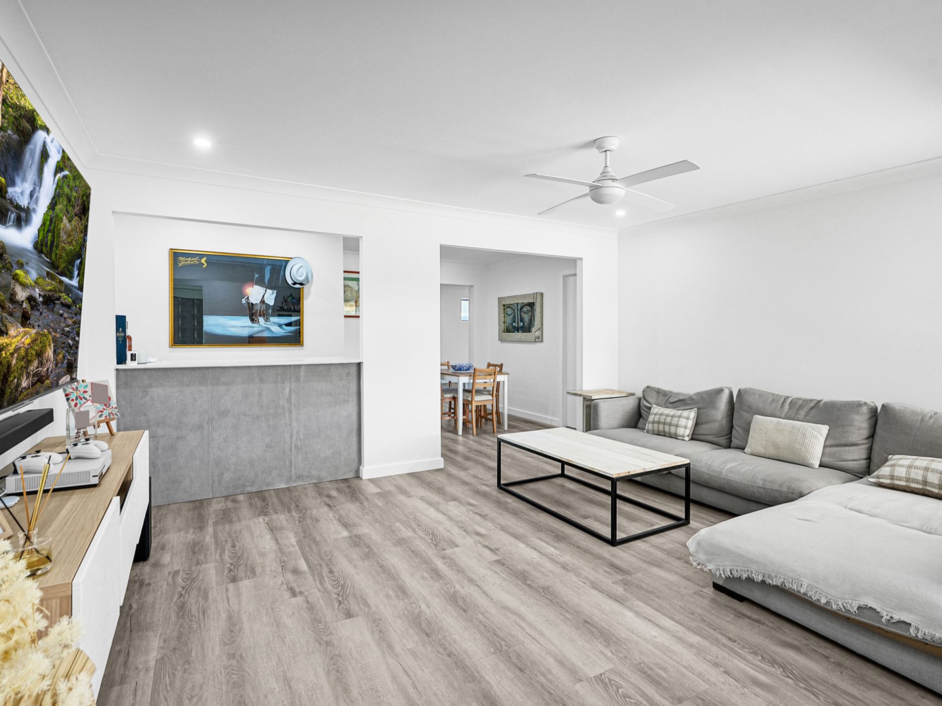 Beyond its inviting features, the residence is adorned with ceiling fans throughout, 2 x split systems for optimal climate control, updated lighting fixtures, and stylish hybrid flooring. Elevate your hosting experience with a dedicated bar area seamlessly integrated around the living spaces, complementing the low-maintenance backyard with a swimming pool—a perfect retreat to stay cool.