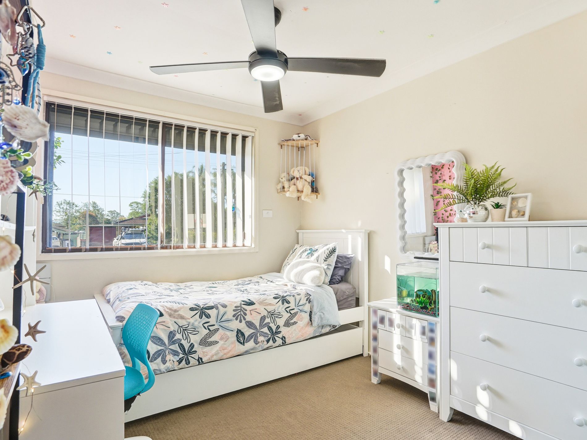 Ceiling fans throughout bedrooms and common areas