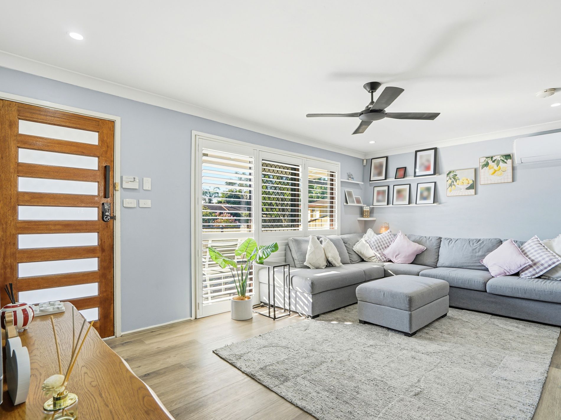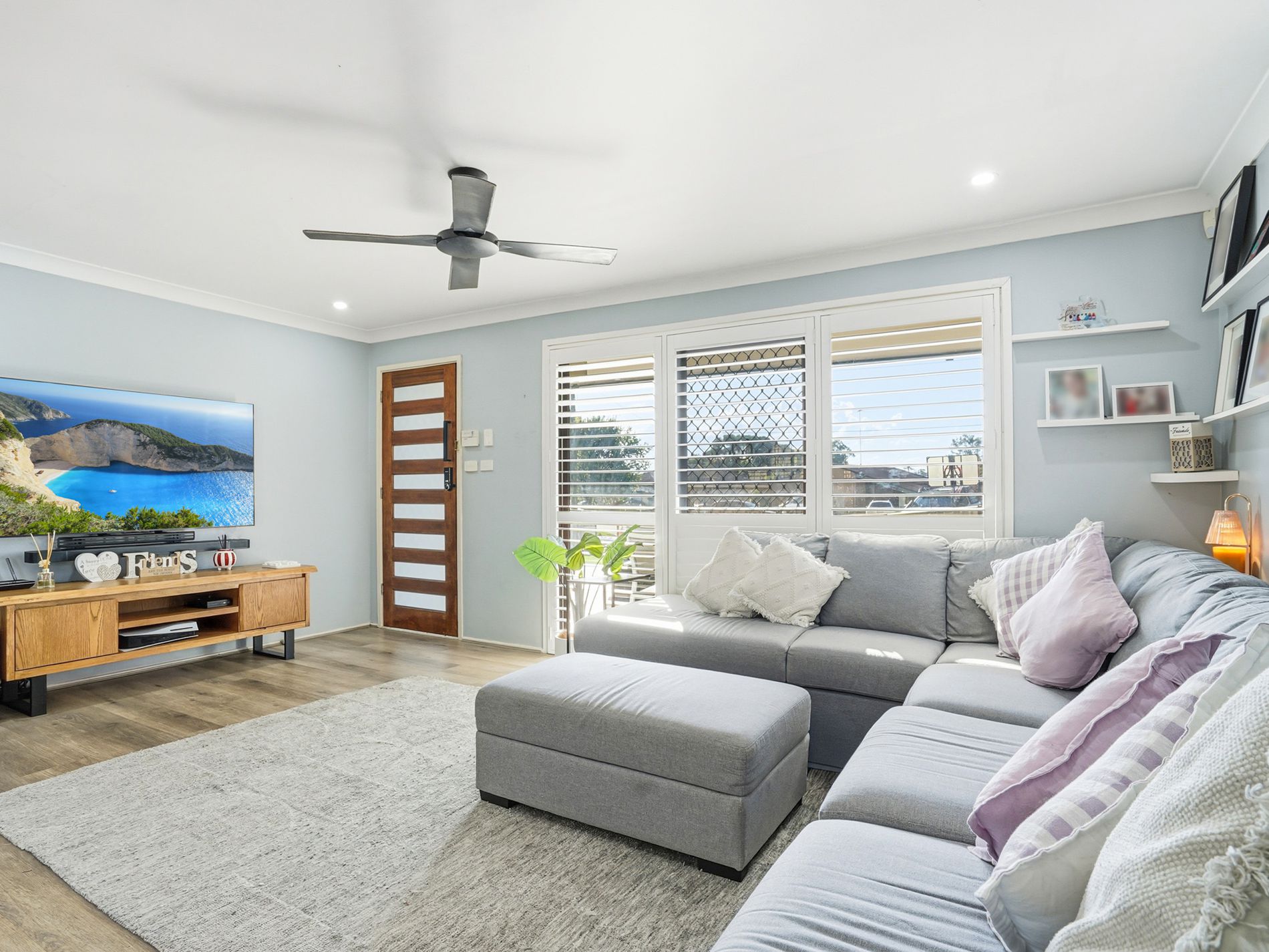 Plantation shutters to the lounge room