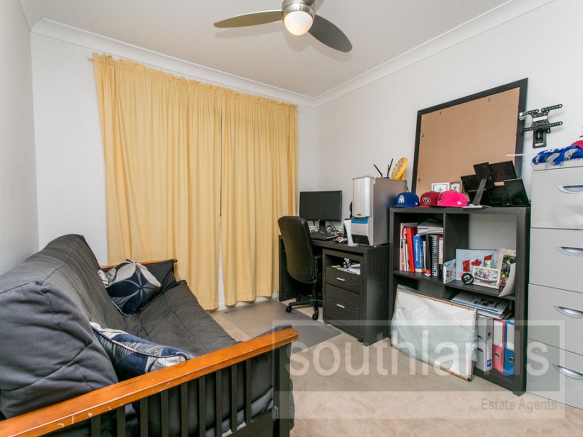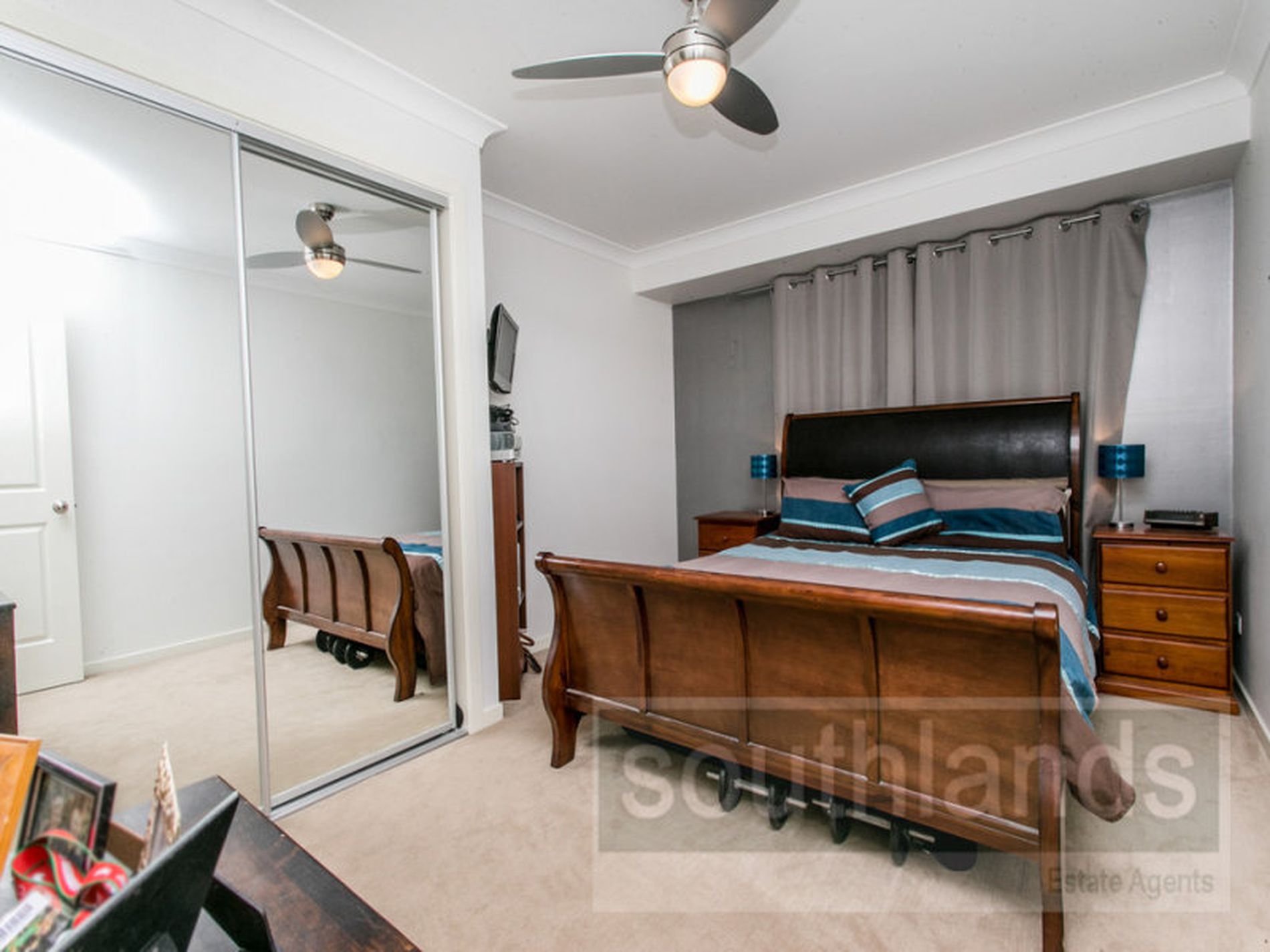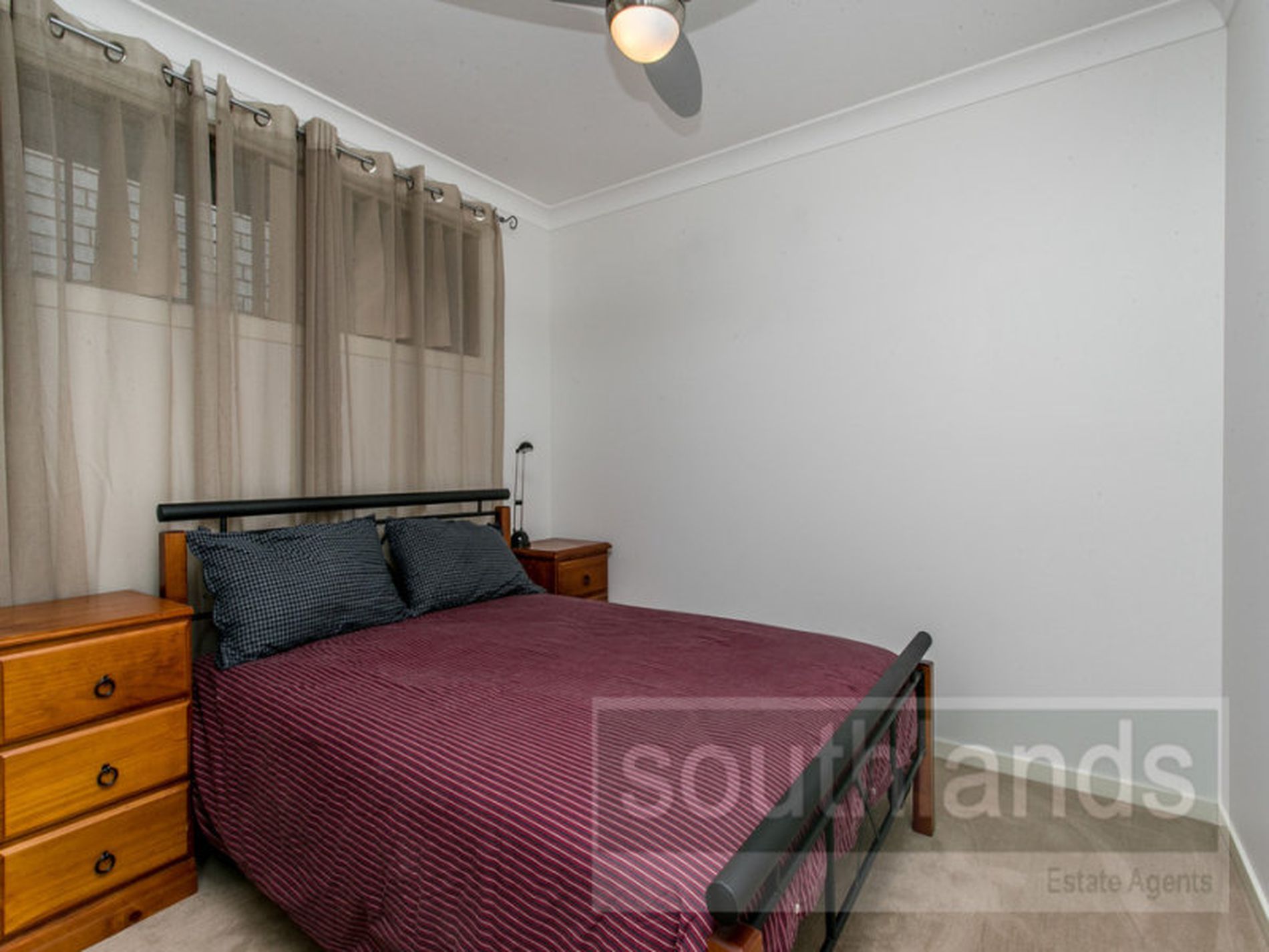 The neat and practical kitchen is well equipped with plenty of storage cupboards, modern celling fan and dishwasher. All 3 bedrooms are carpeted and have mirrored built-in wardrobes, ceiling fans and the main with en suite.