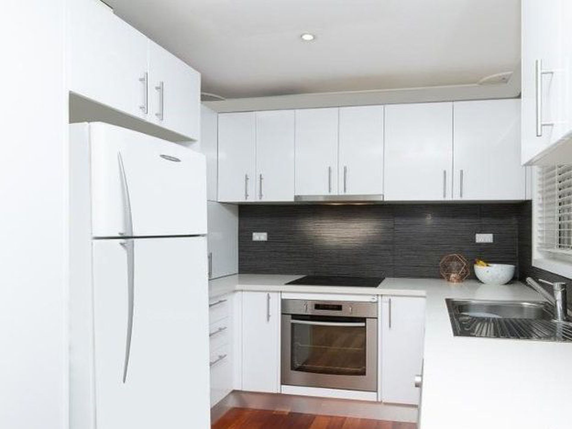 -Polished floorboards in kitchen and living areas