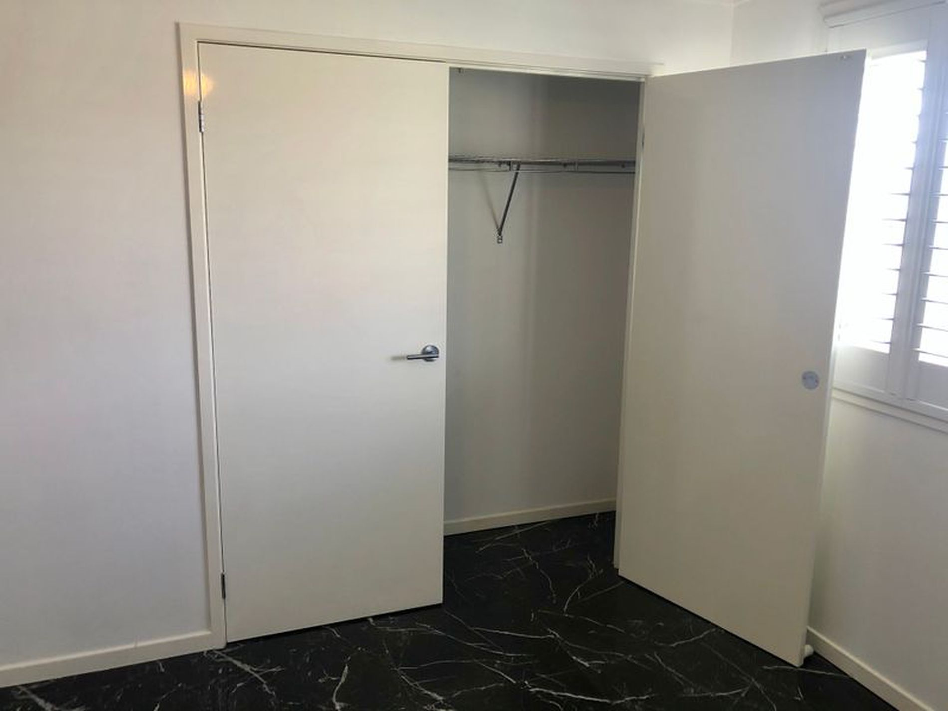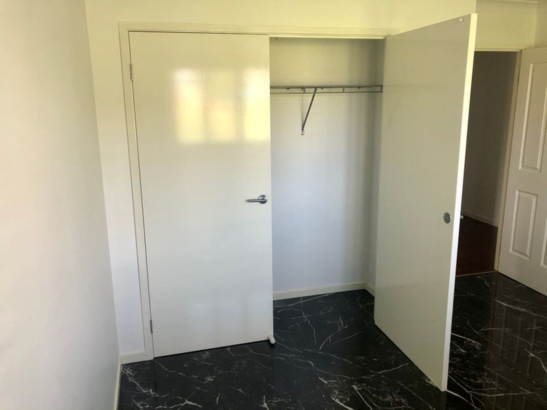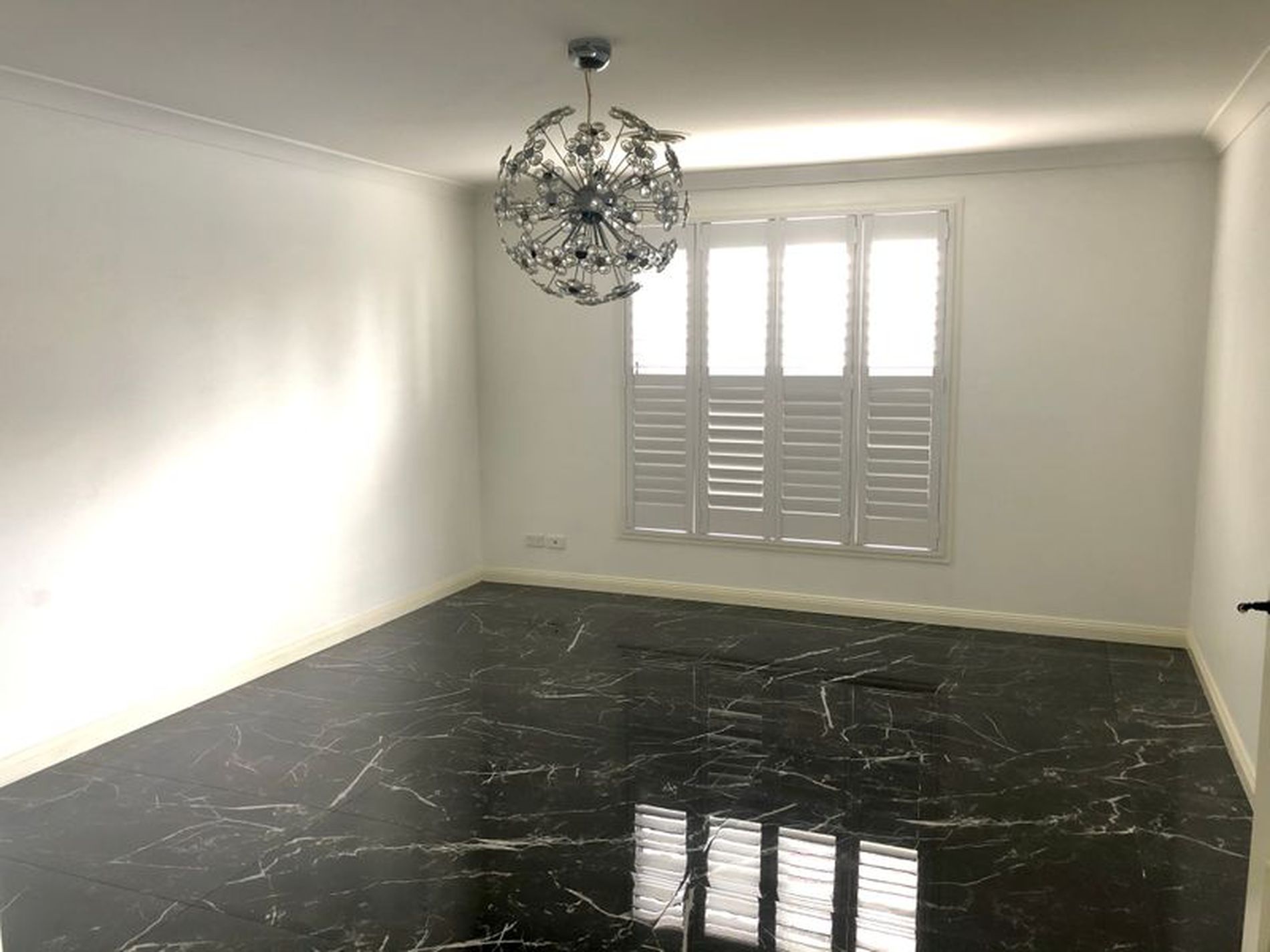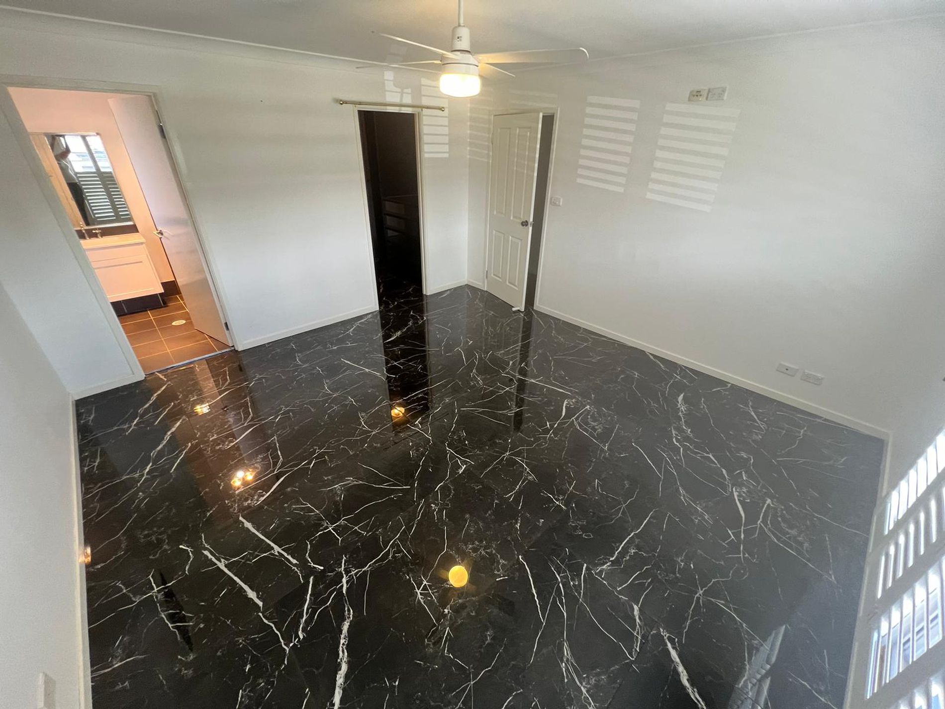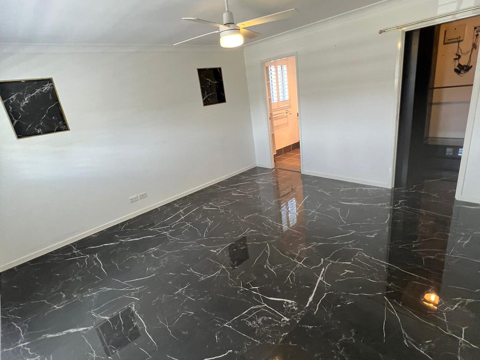 * Main bedroom with walk in rob and en-suite. ( wall paper has been removed and wall has been painted white)